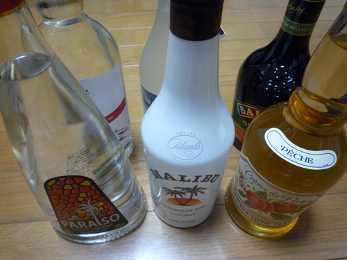 真ん中の白いのは、マリブという、ココナッツのリキュールで、